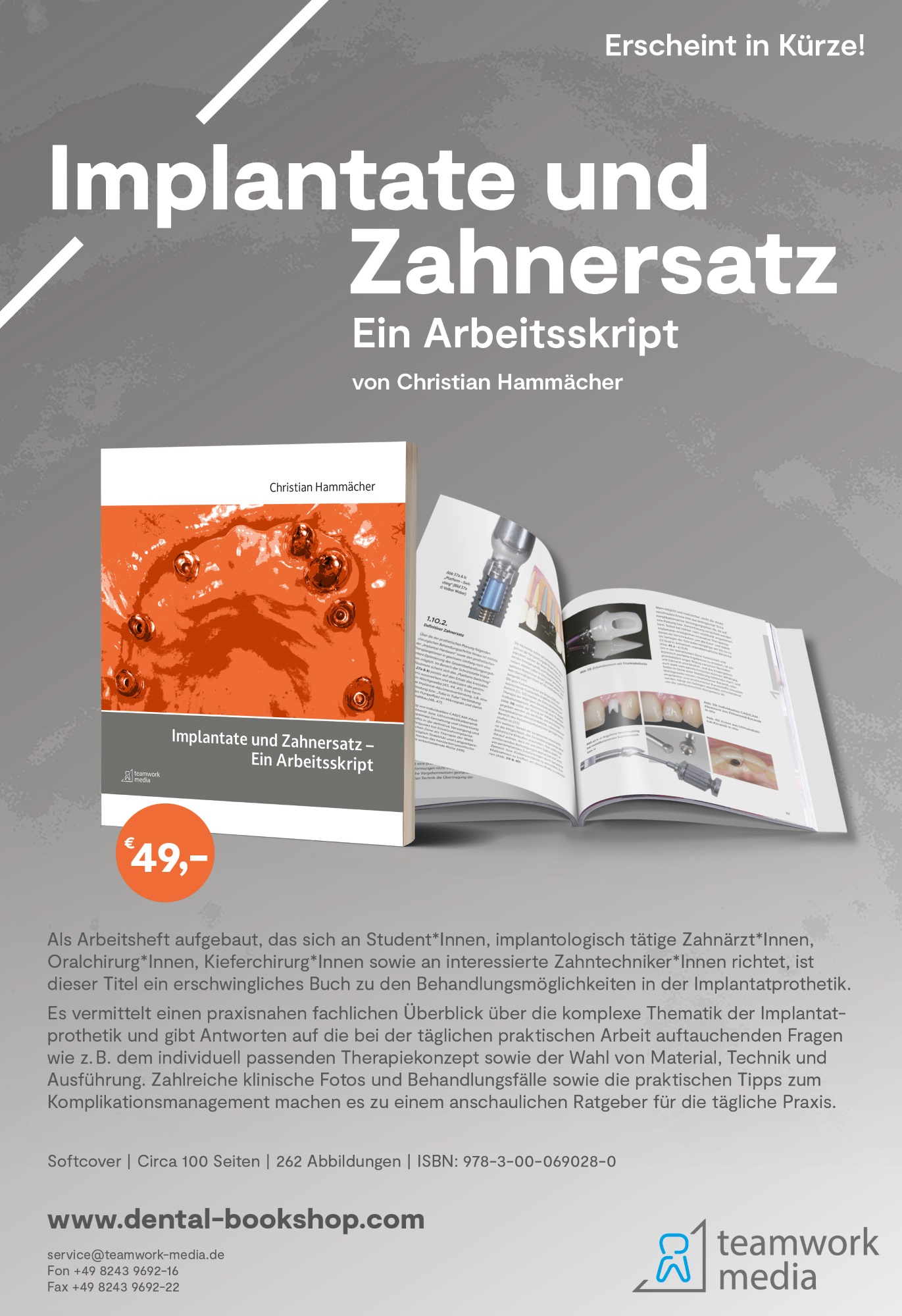 Das Lehrbuch „Implantate – und Zahnersatz – Ein Arbeitsskript“ von Dr. Christian Hammächer ist diese Woche im Teamwork Media – Verlag erschienen.